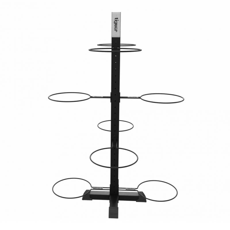 Ein professionelles Rack zur Aufbewahrung von Bodyballs in Fitnessstudios und Fitnessclubs. Der modulare Aufbau ermöglicht eine individuelle Anpassung an individuelle Bedürfnisse, daher sind die Racks in drei Versionen erhältlich: für 4, 6 oder 8 Bälle. Stabile Konstruktion: Das Bodyball-Rack besteht aus einer geschweißten Stahltragkonstruktion, an der einzelne Aufhänger befestigt sind. Verstärkte Grundwände mit zusätzlich gerippten Böden sorgen für hervorragenden Halt und Stabilität auf verschiedenen Oberflächen. Diese Konstruktion gewährleistet maximale Sicherheit und Nutzungskomfort, unabhängig davon, ob das Rack vollständig oder teilweise gefüllt ist. Der 10 mm starke Drahtring des Racks sorgt für ausreichende Stabilität und ermöglicht die sichere Aufbewahrung von Bällen verschiedener Größen (Durchmesser von 50 bis 75 cm) und einem Maximalgewicht von 5 kg. Die ovale Form erleichtert das Einlegen und Entnehmen der Bälle erheblich. Das Bodyball-Rack kann je nach Konfiguration 4, 6 oder 8 Bälle aufnehmen. Die einachsige Anordnung der Ballaufbewahrungsringe (bei den 4- und 6-Ball-Racks) ermöglicht eine platzsparende Platzierung direkt an der Wand. Beim 8-Ball-Rack sind die Aufhänger wechselseitig montiert. Höchste Verarbeitungsqualität: Das Bodyball-Rack besteht aus 3 mm starken Profilen. Zur Verbindung der einzelnen Elemente werden Schrauben der Güteklasse 10.9 verwendet, die auch bei maximaler Belastung eine dauerhafte Verbindung gewährleisten. Die Pulverbeschichtung sorgt für eine ästhetische und langlebige Oberfläche. Dies ermöglicht eine einheitliche, moderne Farbgebung, die sich harmonisch in das Ambiente jedes Trainingsraums einfügt. Das modulare Bodyball-Rack ist eine ausgezeichnete Wahl für alle, die Wert auf Funktionalität, Ordnung und hohe Ästhetik in ihrem Trainingsraum legen. Diese Lösung eignet sich perfekt für Fitnessstudios und Fitnessclubs, in denen Ordnung und Sicherheit im für die Lagerung von Trainingsgeräten vorgesehenen Raum unerlässlich sind. Bitte beachten: Die in den Spezifikationen angegebenen Abmessungen beziehen sich auf das Rack selbst; sie berücksichtigen nicht die Größe der Bälle. Anwendung: Lagerung und Aufbewahrung: Organisation von Fitnessstudios und Fitnessclubs, Aufrechterhaltung der Ordnung im Trainingsraum. Stärken: starke, stabile Konstruktion, erhöhte Bodenhaftung, optisch kompatibel mit anderen tiguar Ständern, ansprechendes Design. Wichtige Informationen: Breite: 130 cm, Tiefe: 130 cm, Höhe: 186,1 cm, Gewicht: 30,2 kg, Tragkraft: bis zu 5 kg/Aufhänger, Farbe: schwarz, minimaler Kugeldurchmesser: 50 cm, maximaler Kugeldurchmesser: 75 cm. Garantiezeit: 12 Monate. Während der Verwendung: Vor UV-Strahlung, organischen und anorganischen Lösungsmitteln geschützt lagern. Das Produkt ist für den Gebrauch im Innenbereich vorgesehen.