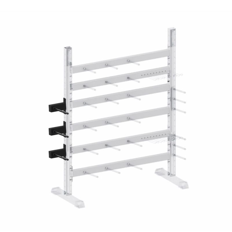 Zusätzlicher Hantelhalter für die modulare Langhantelablage 22/24. Diese spezielle Lösung ermöglicht die Lagerung von zusätzlichen 8 Hantelscheiben à 1,25 kg, 2,5 kg oder 5 kg bzw. 4 Hantelscheiben à 7,5 kg an der modularen Langhantelablage. Für die Montage des Halters benötigen Sie die Basisversion der Ablage. Vorteile der modularen Langhantelablage: Eine professionelle, modulare Ablage für die vertikale Lagerung von PowerGym- und Butterfly-Langhanteln in Fitnessstudios und Fitnessclubs. Das ergonomische Design vereint die Funktionen einer Langhantelablage und eines Hantelhalters und ersetzt so effektiv zwei einzelne Zubehörteile. Die modulare PowerGym-Ablage verfügt über eine robuste Stahlkonstruktion aus 3 mm starken Metallprofilen. Die dauerhafte Verbindung der einzelnen Komponenten wird durch verzinkte Schrauben der Güteklasse 10.9 gewährleistet. Eine zusätzliche schwarze Zinkbeschichtung erhöht die Korrosionsbeständigkeit, verlängert die Lebensdauer des Geräts deutlich und erhält seine hochwertige Ästhetik dauerhaft. Der robuste Standfuß der modularen PowerGym-Ablage mit zusätzlich gerippter Unterseite bietet hervorragenden Halt und Stabilität auf verschiedenen Oberflächen und garantiert absolute Sicherheit auch bei maximaler Belastung. Das Produkt ist pulverbeschichtet, was die Ästhetik der Lösung unterstreicht. Wichtige Informationen: Länge: 20 cm, Tiefe: 40 cm, Höhe: 19 cm, Gewicht: 2 kg, Farbe: Schwarz, Material: Stahl, Garantiezeit: 60 Monate. Während des Gebrauchs: Vor UV-Strahlung sowie organischen und anorganischen Lösungsmitteln geschützt lagern. Dieses Produkt ist für den Innenbereich bestimmt.