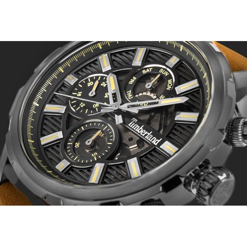 Die markante Timberland-Logo-Prägung rundet den Look ab, unterstreicht die Markenidentität und verleiht dem Armband einen unverwechselbaren Charakter. Dieses Detail wirkt nicht nur beeindruckend, sondern trägt auch zum stimmigen, von der Natur inspirierten Design der Uhr bei.