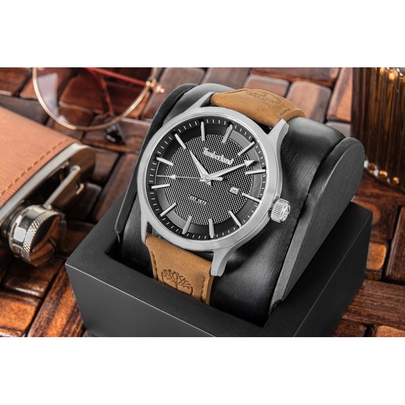 Die markante Timberland-Logo-Prägung rundet den Look ab, unterstreicht die Markenidentität und verleiht dem Armband einen unverwechselbaren Charakter. Dieses Detail wirkt nicht nur beeindruckend, sondern trägt auch zum stimmigen, von der Natur inspirierten Design der Uhr bei.