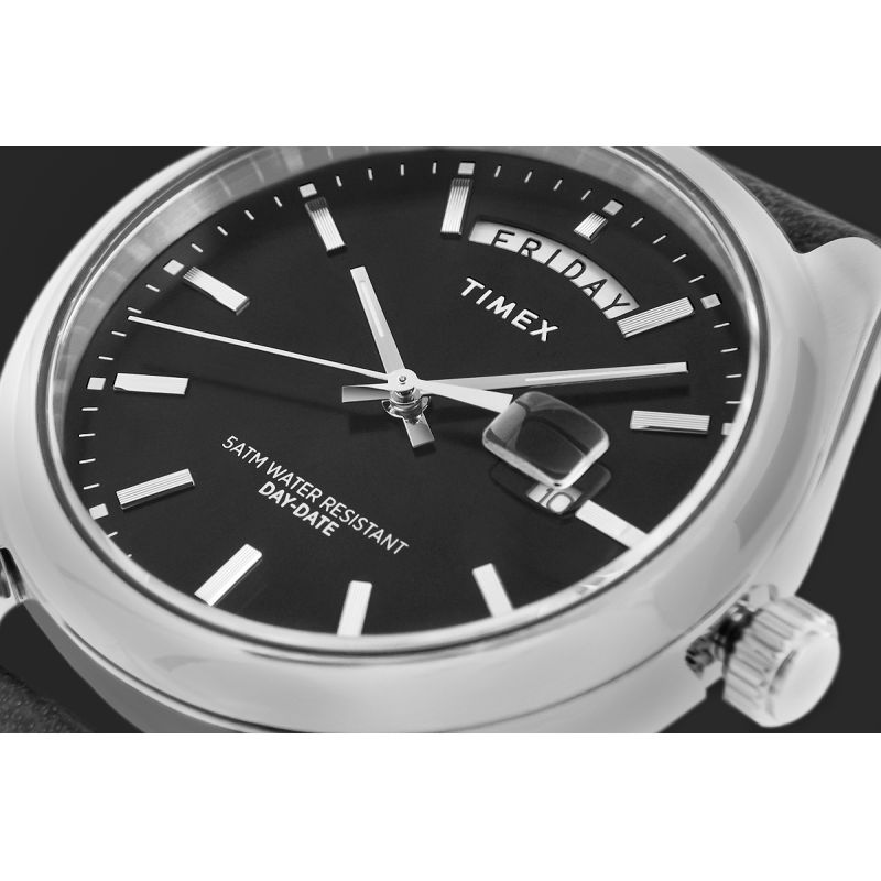 Die TIMEX Legacy für Herren ist eine zeitgemäße Interpretation eines Uhrenklassikers und beweist, dass Tradition und Moderne perfekt harmonieren. Das Gehäuse aus recyceltem Edelstahl und das schwarze Armband aus veganem Leder sind nicht nur stilvoll, sondern auch eine bewusste Wahl. Das schwarze Zifferblatt mit Sonnenschliff zieht die Blicke auf sich, während funktionale Details – die Wochentagsanzeige bei 12 Uhr und die vergrößerte Datumsanzeige – für optimale Übersicht sorgen. Mit einem Durchmesser von 41 mm schmiegt sich die Uhr perfekt ans Handgelenk und passt zu jedem Outfit – vom Blazer bis zum T-Shirt. Ob im Meeting, beim Wochenendtrip oder einfach für einen stilvollen Alltagslook: Dieses Modell ist ein zeitloser Klassiker, der immer passt.