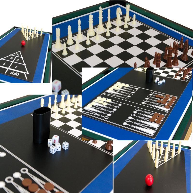Mit dem 9-in-1-Multispieltisch (121 x 61 x 80 cm) erleben Sie actionreiche Spielrunden, wann immer Sie Zeit haben. Zögern Sie nicht und suchen Sie sich würdige Gegner für jedes Spiel!
