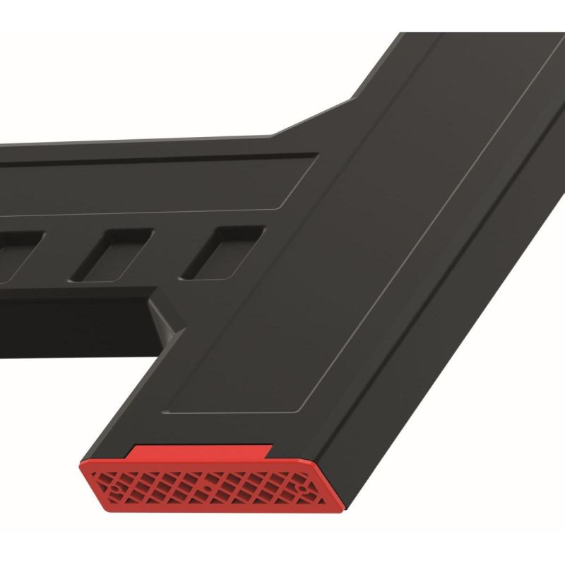 - Die profilierte Form der Oberkante ermöglicht das Befestigen, Bearbeiten oder Schneiden von Rohren oder Streifen.