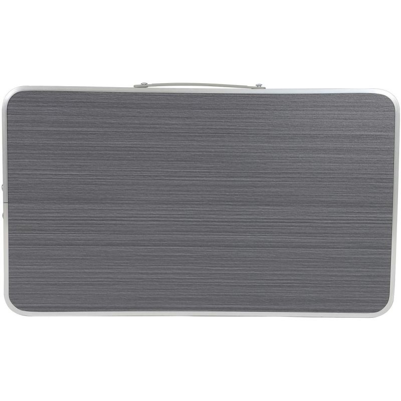 Der graue Campingtisch (56 x 34 x 24 cm) ist eine vielseitige Lösung, die sowohl bei aktiver Freizeitgestaltung als auch im Alltag eingesetzt werden kann.