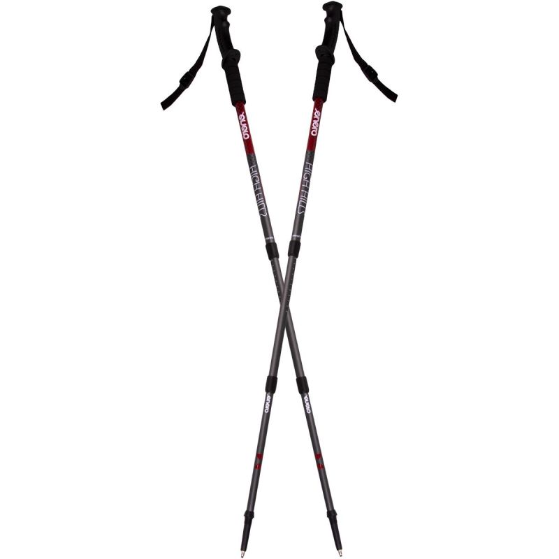 Die HIGH HILLS-Stöcke sind dreiteilig, lassen sich schrittweise ausklappen und sind mit einem speziellen Sequenzverriegelungssystem ausgestattet, das eine stabile Einstellung der Stocklänge und ein einfaches Zusammenklappen gewährleistet und somit den Transport und die Lagerung erleichtert.