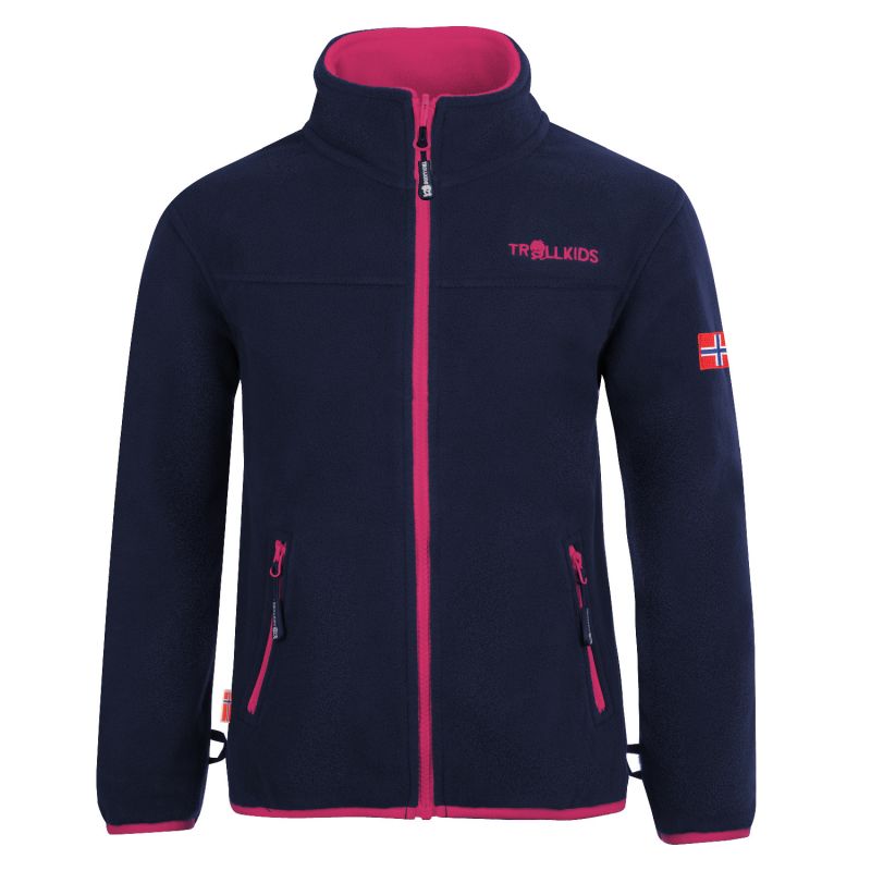 Trollkids Girls Oppdal Jacket XT Fleecejacke mit Reißverschluss für Mädchen, Marineblau/Pink (415-114)
