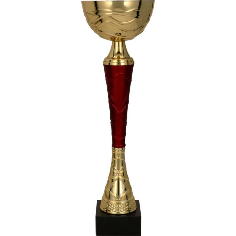Ein klassisches Design in Gold und Rot. Eine kleine, wellenförmige Schale und ein wunderschön verzierter, schmaler Stiel verleihen ihr eine dezente Note. Sie eignet sich perfekt als Trophäe für verschiedene Anlässe.