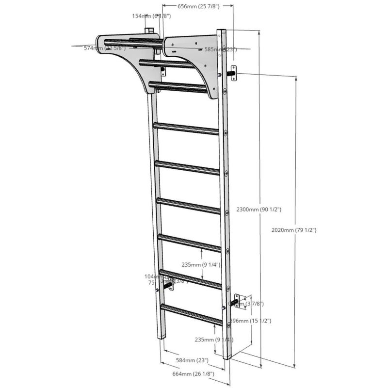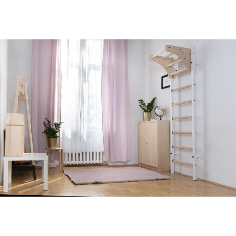 Der größte Vorteil dieses Modells ist seine moderne Konstruktion und sein Design, wodurch es im Vergleich zu den üblichen Holzleitern, die wir aus Turnhallen kennen, langlebiger ist.