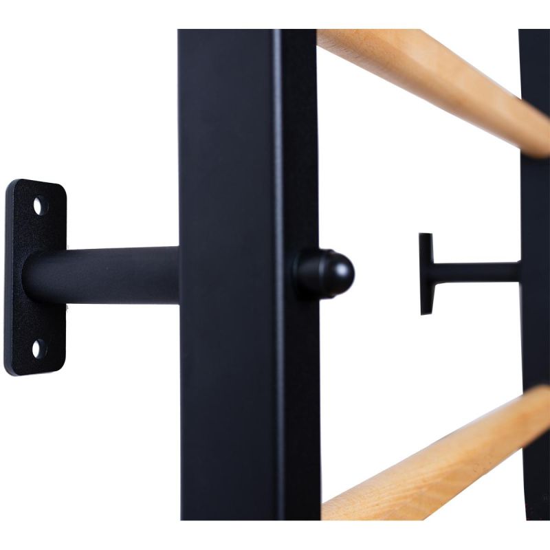 Diese Turnleiter mit verstellbarer Stange, Handlauf und Bank ist ein Modell, das perfekt zu skandinavischen Einrichtungen passt. Die vertikalen Profile (40 mm x 50 mm) sind aus hochwertigem, pulverbeschichtetem Metall gefertigt. Die Sprossen bestehen aus ovalem Buchenholz und sind handgeölt, was die Leiter besonders komfortabel macht. Oben befindet sich eine abnehmbare Klimmzugstange aus Metall mit sechs verschiedenen Griffen, die es ermöglichen, Arm- und Rückenmuskulatur durch unterschiedliche Griffarten, wie z. B. einen breiten Griff, zu trainieren. Diese Leiter wurde für alle entwickelt, die bequem von zu Hause aus an ihrer Fitness arbeiten möchten. Sie ermöglicht vielfältige Übungen auf kleinem Raum. Das Design wurde sorgfältig durchdacht, um aktuelle Einrichtungstrends zu ergänzen, ohne die Gesamtgestaltung des Hauses zu stören. Höhe und Position der Stange können von einem Erwachsenen verstellt werden. Durch Drehen der Klimmzugstange kann diese auch als Griff für eine Langhantel verwendet werden.
