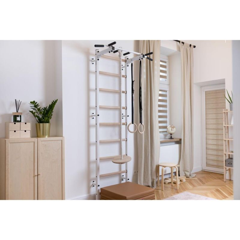 Die Leiter ist für ein maximales Benutzergewicht von 150 kg ausgelegt. Sie ermöglicht vielfältige Übungen, ist platzsparend und schnell und einfach aufzubauen. Ihr Design entspricht modernen Einrichtungstrends. Die Leiter trägt dazu bei, gesunde Gewohnheiten bei Kindern zu fördern und ein Gleichgewicht zwischen Fernsehen, Computer und Bewegung zu schaffen.