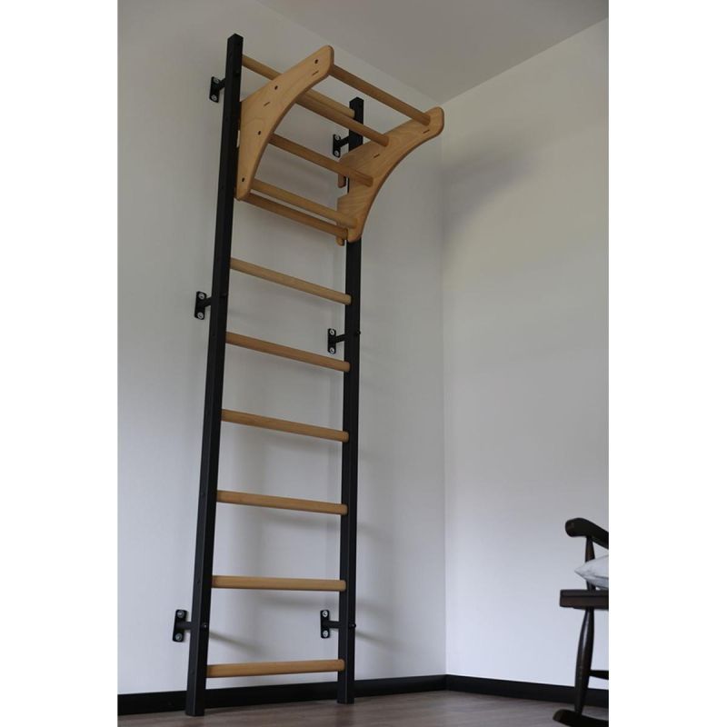 Turnwand-Stangen aus Holz und Metall mit hölzerner Hantelbank K 711W