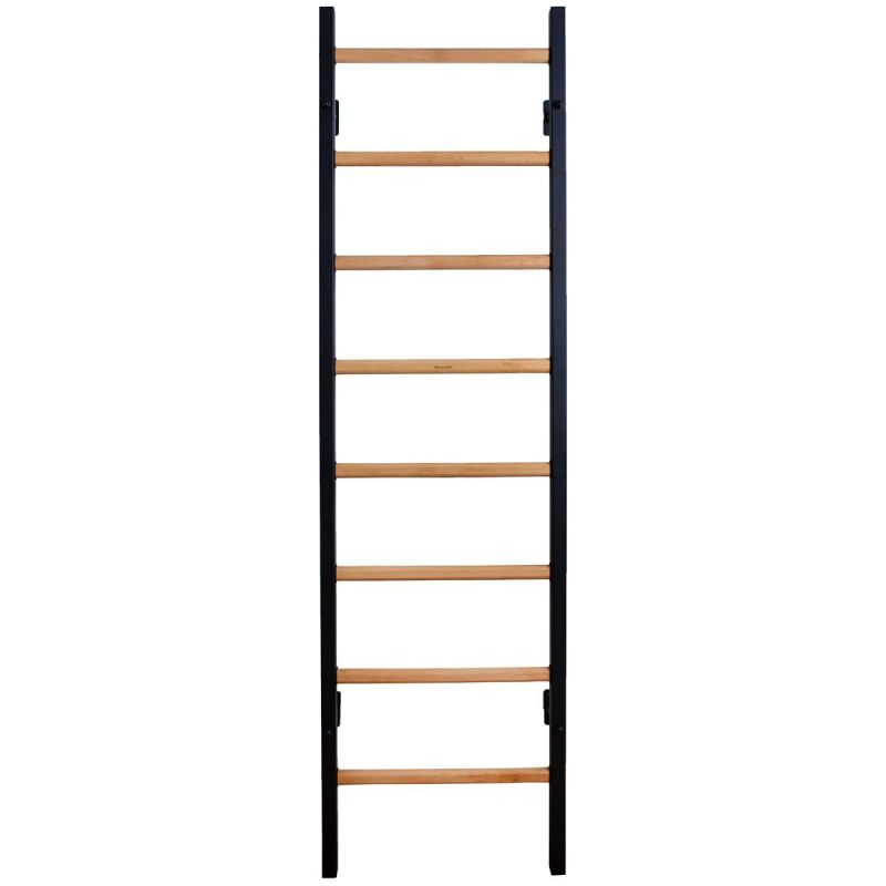 Diese Turnwand aus Holz und Metall besticht durch ihr robustes und praktisches Design. Sie ist platzsparend, wird an der Wand montiert und ragt ca. 15 cm hervor – die ideale Ergänzung für jeden Raum. Die innovative Kombination aus Holz und Metall entspricht perfekt den aktuellen Trends moderner Inneneinrichtung. Die Seitenprofile der Turnwand bestehen aus 40 x 50 mm starkem Metall mit einer 2 mm dicken Stahlplatte. Das verwendete Metall ist von hoher Qualität, und die Pulverbeschichtung schützt die Profile vor Absplitterungen, Kratzern und Abnutzungsspuren durch Gebrauch und Kontakt mit Zubehör. Die T-förmige Stoßdämpfung der Wandhalterungen ist für hohe Belastungen bis zu 150 kg pro Person ausgelegt. Die Sprossen sind aus Buchenholz gefertigt und handgeölt, um ein Abrutschen der Hände bei Übungen an der Turnwand zu verhindern. Dies schützt die Wand außerdem vor Abnutzung, Kratzern und Verschmutzungen.