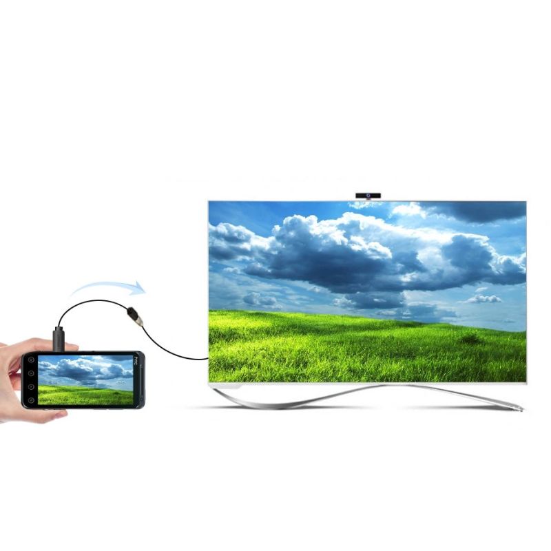Ein Adapter mit einer Kabellänge von 20 cm ermöglicht den Anschluss des HDMI-Kabels an den Micro-HDMI-Anschluss des Geräts.
