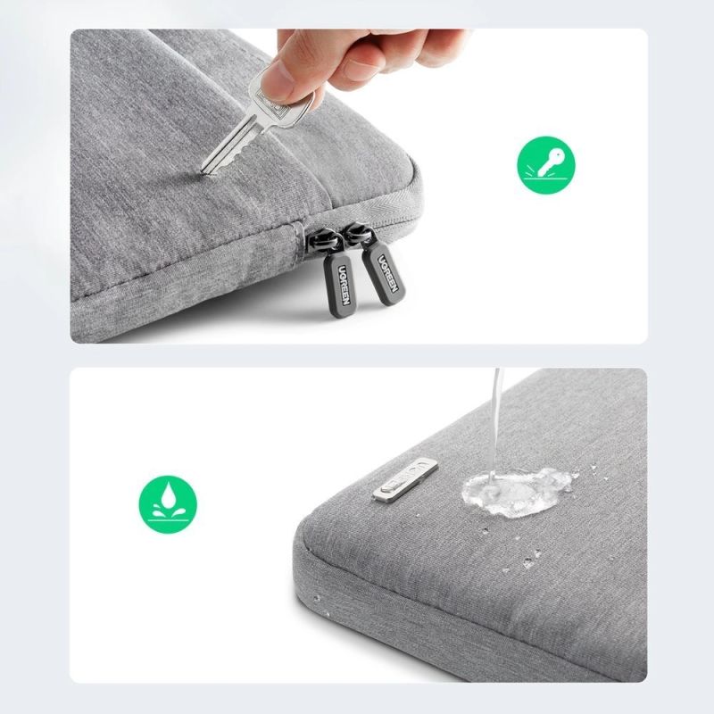 Die Ugreen Tasche besteht aus drei Schichten. Die äußere Schicht bietet einen hohen Schutz vor Feuchtigkeit oder Wasserschäden. Bei Regen ist Ihr Laptop sicher! Das ästhetische Erscheinungsbild des Geräts bleibt lange erhalten, es ist jedoch nicht anfällig für Kratzer.