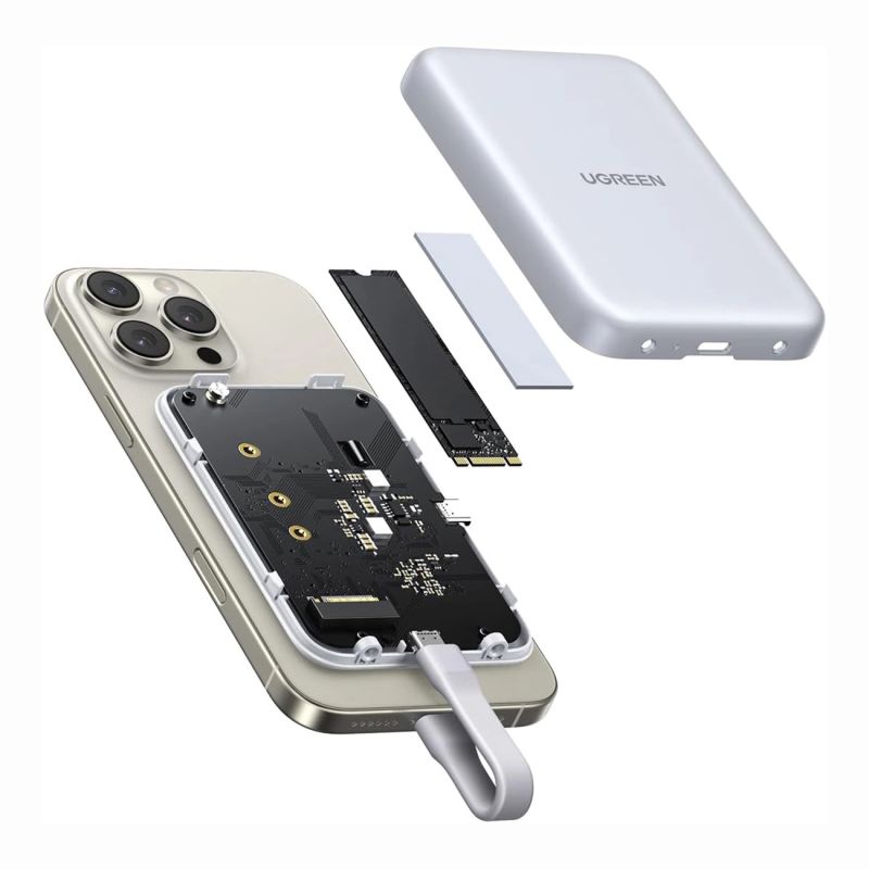Das Ugreen für M.2 NVMe-SSDs ist eine moderne und komfortable Lösung für alle, die den Speicherplatz ihrer Mobilgeräte erweitern möchten. Dank eines starken Magnetmoduls lässt es sich einfach an den neuesten iPhone-Modellen (und Smartphones mit Magnetverschluss) befestigen, während die schnelle USB 3.2 Gen2-Schnittstelle Übertragungsgeschwindigkeiten von bis zu 10 Gbit/s ermöglicht. Es ist das perfekte Werkzeug für Videoproduzenten, Fotografen und alle, die schnellen, mobilen Datenspeicher benötigen.