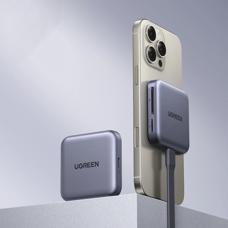Ugreen Magnetischer Speicherkartenleser + USB-C 100W PD 3-in-1-Anschluss – Grau