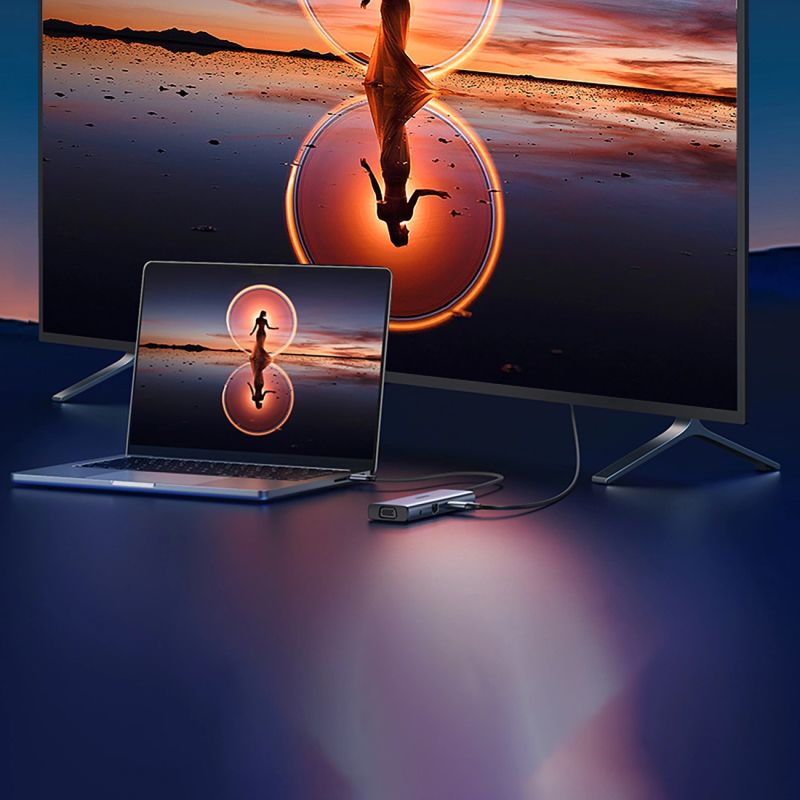 Der 10-in-1-Hub ermöglicht die gleichzeitige Nutzung von HDMI, Ethernet, vier USB-Anschlüssen, USB-C PD-Stromversorgung sowie SD- und microSD-Kartenlesern, was die Organisation Ihres gesamten Arbeitsplatzes erleichtert.