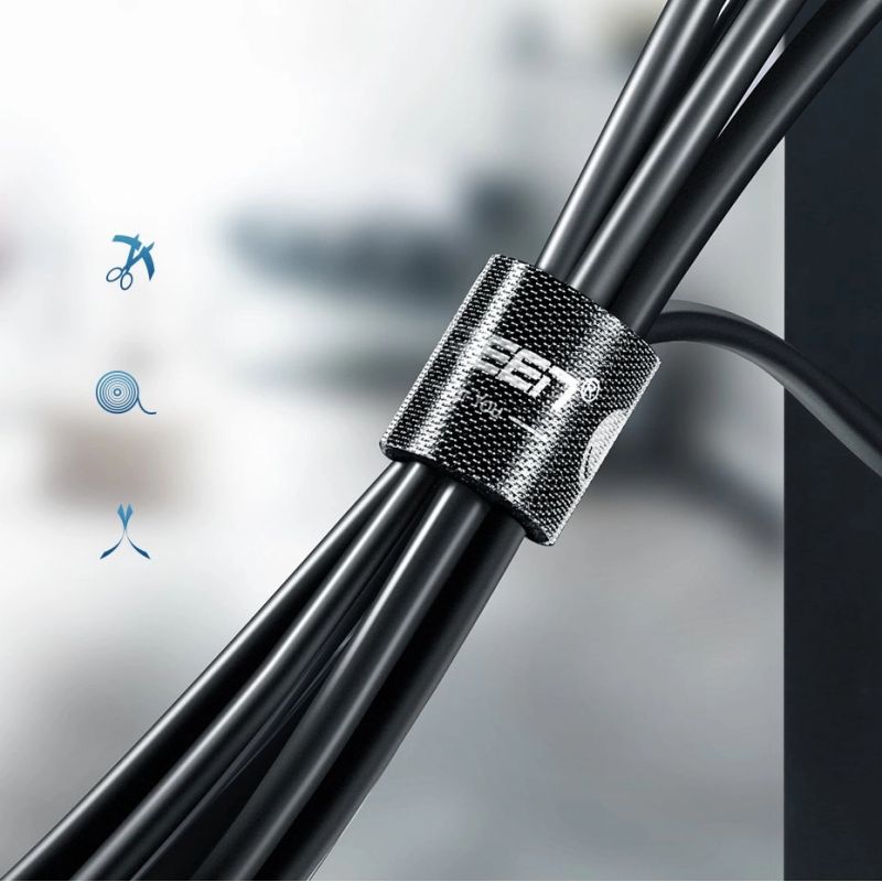 Praktisches Klebeband, Klettverschluss zum Befestigen und Organisieren von Kabeln. Damit können Sie die Kabel ergonomisch auf dem Schreibtisch anordnen. Dank ihnen werden Sie mit dem ständigen Kabelsalat fertig, der die komfortable Nutzung des Computers stört.