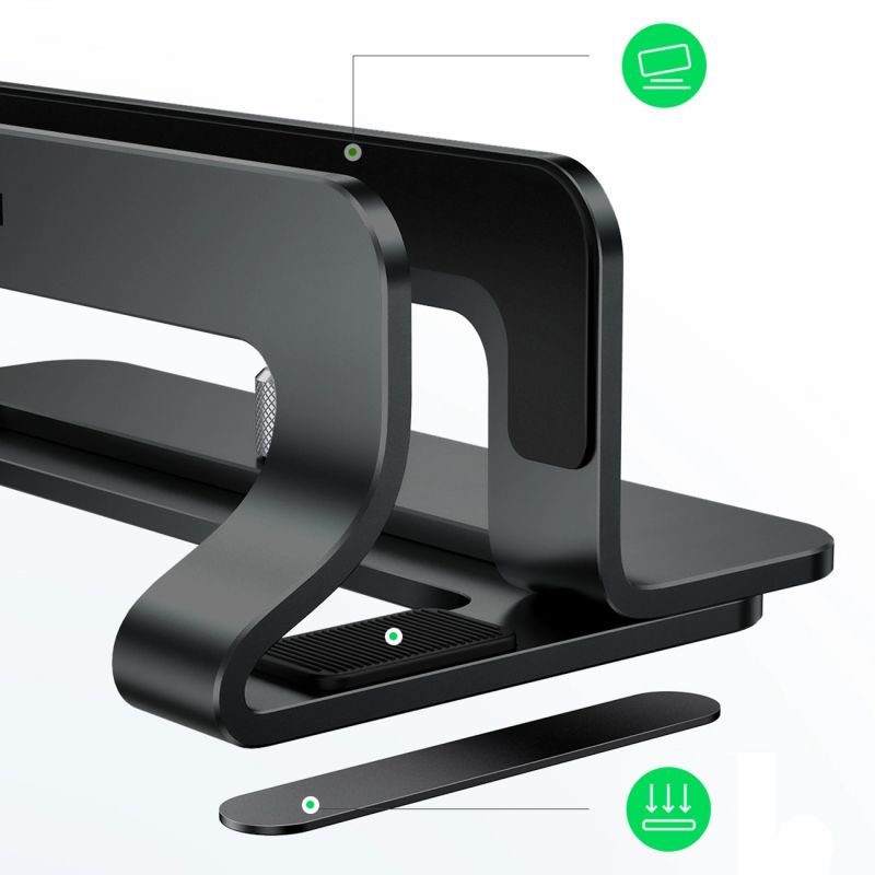 Der Ständer ist perfekt für die Arbeit mit einem Bildschirm, der an einen Laptop angeschlossen ist. Sie können Ihr Notebook in einer praktischen Halterung platzieren, um Platz auf Ihrem Schreibtisch zu sparen, und die Tastatur und den externen Bildschirm verwenden. So sorgen Sie für Ordnung am Arbeitsplatz und Ihr Laptop ist sicher – keine Angst vor Kabelsalat oder versehentlichem Herunterfallen von Geräten vom Schreibtisch. Der Ständer ist auch die perfekte Möglichkeit, Ihren Laptop aufzubewahren, wenn er nicht verwendet wird. Durch die senkrechte Position nimmt er wenig Platz ein und ist vor Stürzen geschützt.