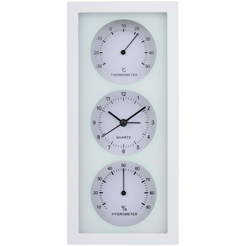 Uhr, Wecker, Thermometer, Hygrometer 26 x 5 x 12 cm Articosa Weiß