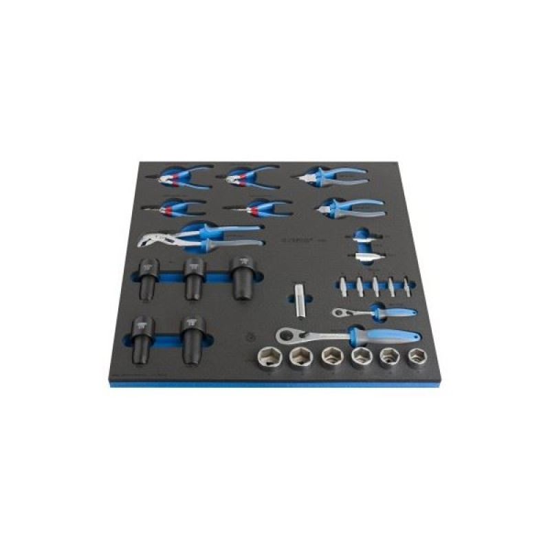 Das Set besteht aus einer speziell zusammengestellten Auswahl an Federungszangen, Gabelsimmerringwerkzeugen, Gabelsteckschlüsseln und mehr.