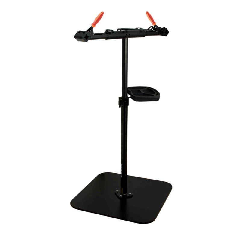 Ein Fahrradreparaturständer mit Plattenfuß und zwei Backen, der für Reparaturwerkstätten und anspruchsvollere Benutzer konzipiert ist.