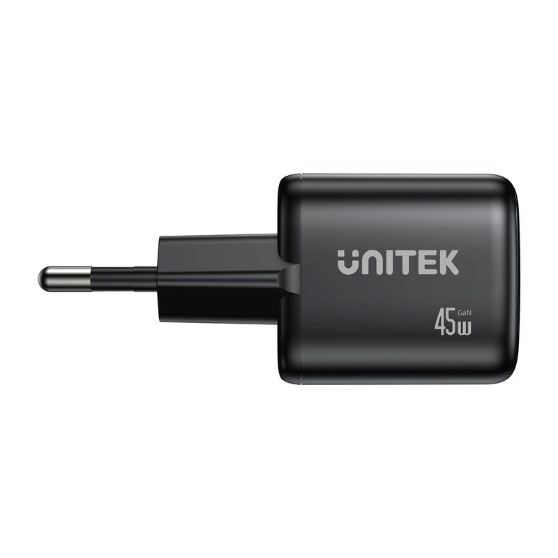 UNITEK 2x GAN 45W Ladegerät, 2x USB-C PD 3.0, QC, Schwarz