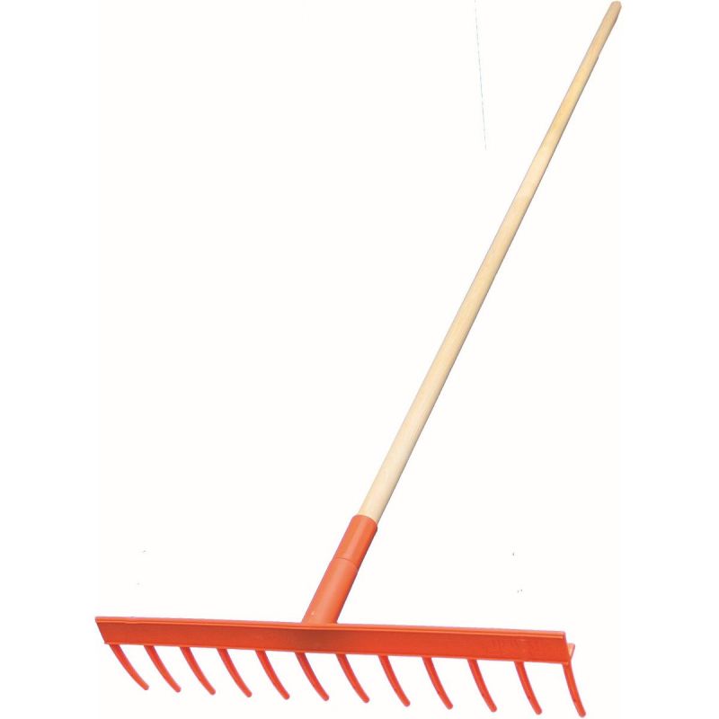 Die leuchtend orange Farbe sorgt dafür, dass der Rechen im Gras oder im Gartenhäuschen gut sichtbar ist. Selbst zwischen anderen Gartengeräten geht er nicht verloren.