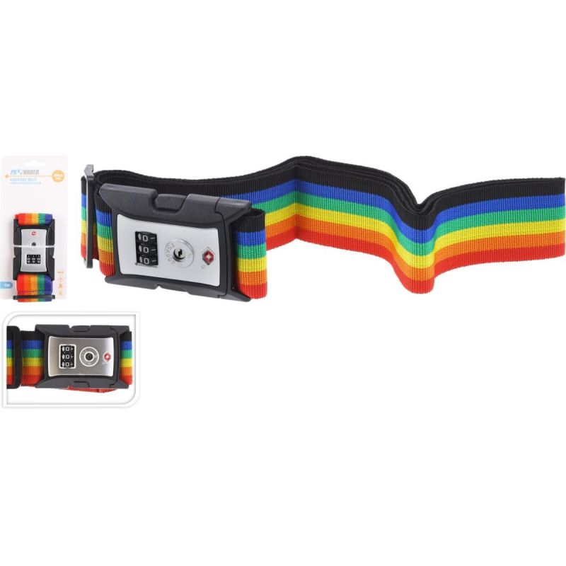 Universeller Sicherheitsgurt für Koffer 180x5cm mit Proworld-Code, mehrfarbig