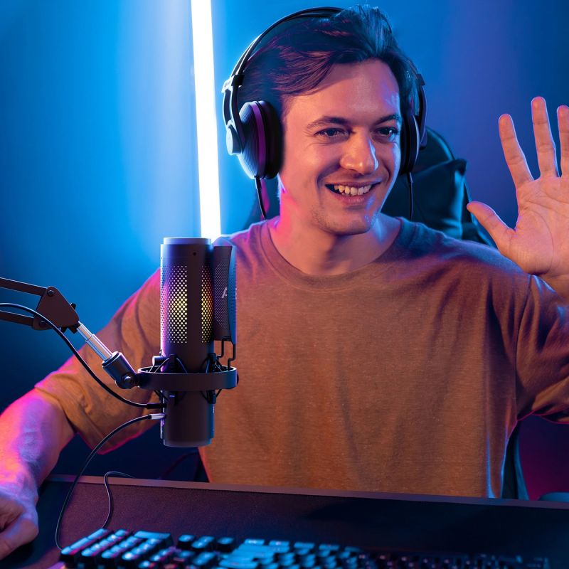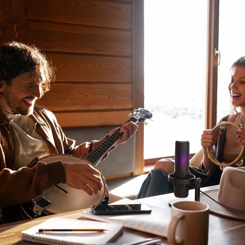 - RGB-Hintergrundbeleuchtung: Möglichkeit zur Änderung der visuellen Effekte des Mikrofons.