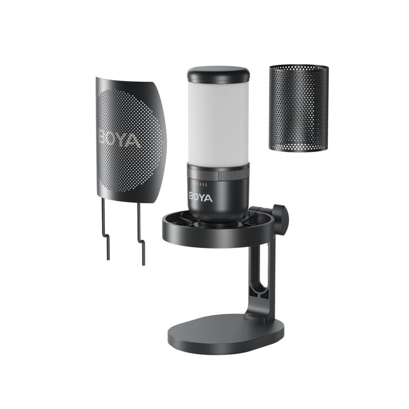 Das BOYA K3 ist ein USB-Mikrofon für hochwertige Aufnahmen im Heimstudio, für Streaming und Podcasts. Es bietet 48 kHz/16-Bit-Audioaufnahme und eine Supernierencharakteristik, die die Stimme fokussiert und Umgebungsgeräusche minimiert. Dank integrierter Rauschunterdrückung und Stummschaltfunktion lassen sich Aufnahmen problemlos in Echtzeit überwachen. Das Mikrofon verfügt außerdem über eine RGB-Hintergrundbeleuchtung und einen Verstärkungsregler, was die Aufnahme vereinfacht und Ihnen mehr Kontrolle über Ihren Sound ermöglicht.