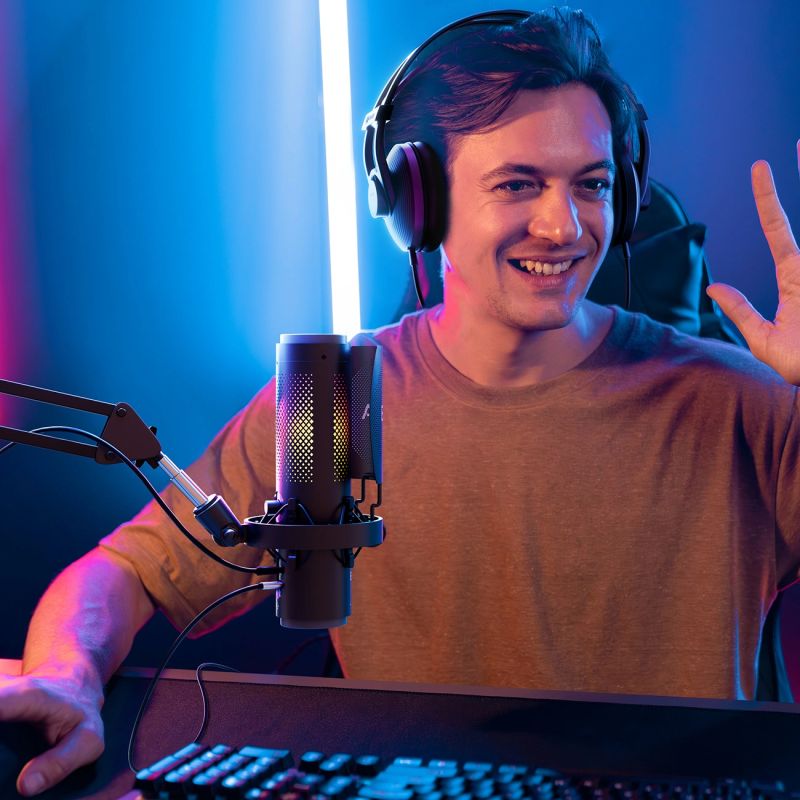 - RGB-Hintergrundbeleuchtung: Möglichkeit zur Änderung der visuellen Effekte des Mikrofons.