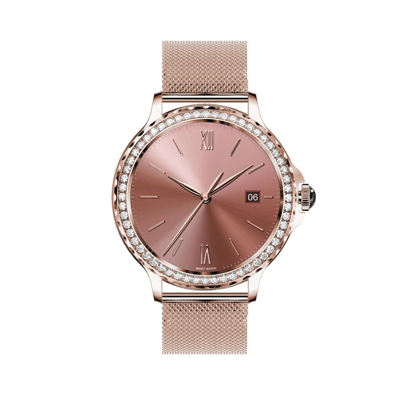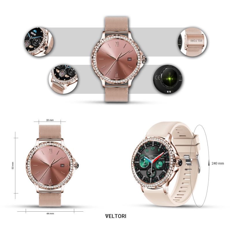 VELTORI VT320-1 Damen-Smartwatch, Goldarmband + rosa Silikonarmband