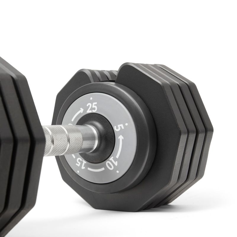 - Mit fünf Gewichtseinstellungsstufen – 5 kg, 10 kg, 15 kg, 20 kg und 25 kg – bietet diese robuste Hantel vielfältige Trainingsmöglichkeiten und ermöglicht Ihnen ein effektives Training Ihrer Bein-, Arm-, Rücken-, Brust-, Schulter- und Bauchmuskulatur.
