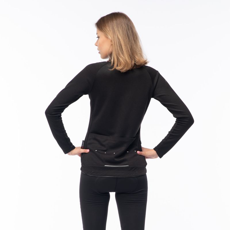 Der taillierte Schnitt und die verlängerte Rückseite des Sweatshirts sorgen für eine gute Passform beim Fahren und schützen die Lendenwirbelsäule.