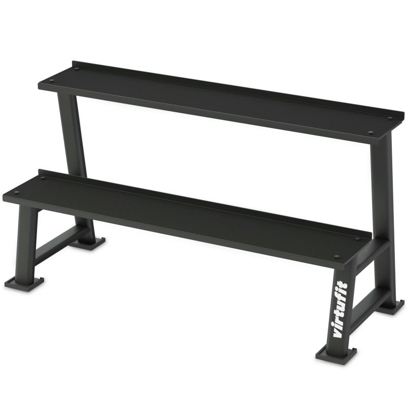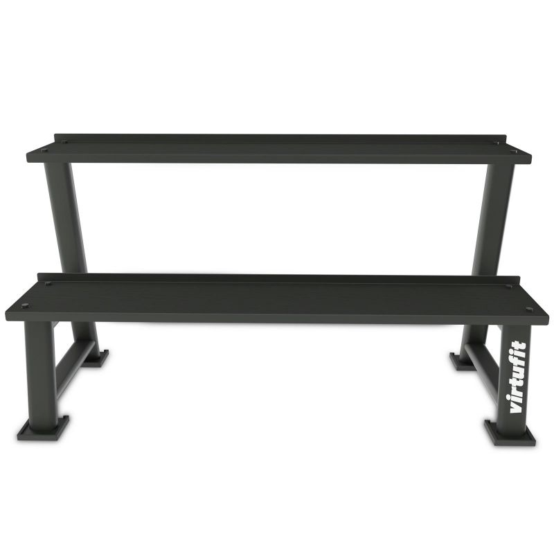 Mit dem VirtuFit Kettlebell Rack gestalten Sie Ihren Trainingsbereich ordentlich und professionell. Dieses robuste und kompakte Rack bietet zwei geräumige Ebenen, um Ihre Kettlebells sicher und übersichtlich aufzubewahren.