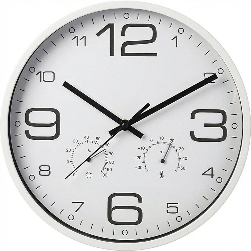 Wanduhr 30 cm mit Thermometer, weiß