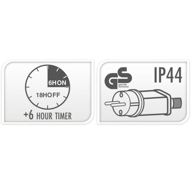 - Mit dem integrierten 8/16-Stunden-Timer können Sie die Zeiten auswählen, zu denen die Lichter eingeschaltet sein sollen.