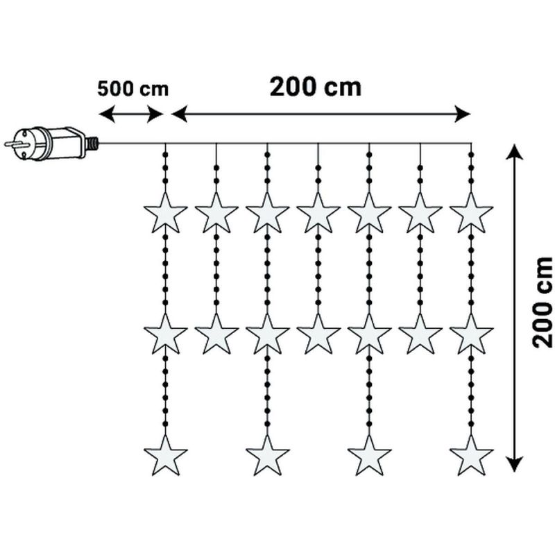 Weihnachtsbaumbeleuchtung, Lichtervorhang 200x200 cm, 415 LEDs, warmweiße Sterne