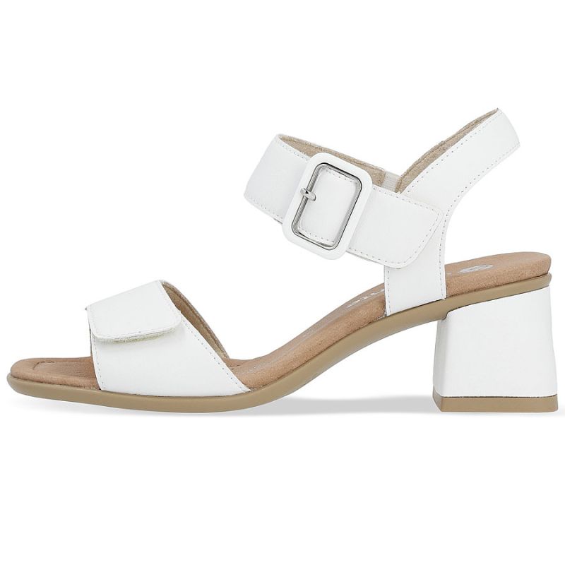 Weiße Damen-Ledersandalen mit Blockabsatz, Modell Remonte by Rieker, Modell D1K51-80