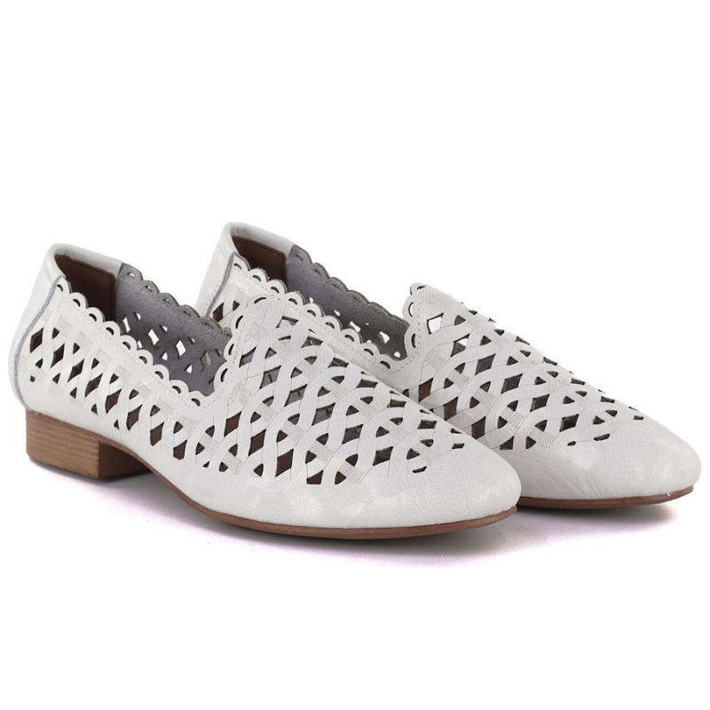 Weiße Damen-Lederschuhe mit Lochmuster, Modell Jezzi OL50-1