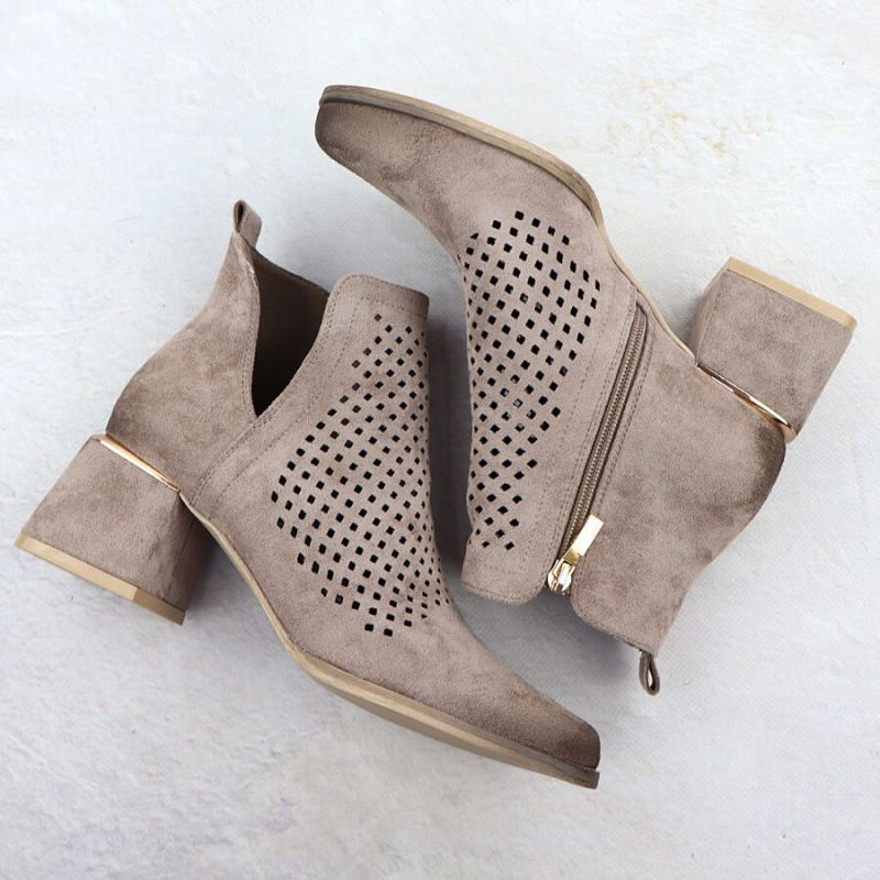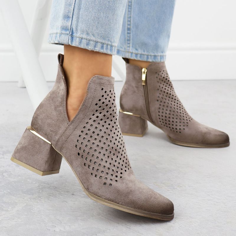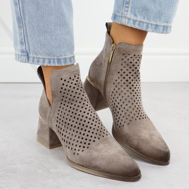 Wildleder-Ankle-Boots für Damen mit durchbrochenen Absätzen, grau, Potocki SZ12356