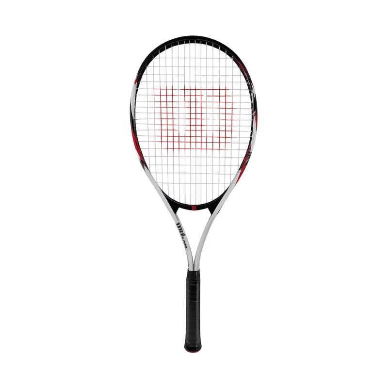 Wilson Fusion XL TNS RKT 3 4 3/8 Tennisschläger, Weiß, Schwarz und Rot, WR199110U3. Dieser Wilson Tennisschläger ist ideal für Anfänger und Gelegenheitsspieler. Der extra große Schlägerkopf sorgt für Komfort und optimale Power. Das leichte Design entlastet den Arm. Durch die etwas größere Länge im Vergleich zu Standardmodellen bietet der Schläger eine größere Reichweite. Die AirLite Alloy-Technologie reduziert das Gewicht des Schlägers bei gleichbleibender Haltbarkeit. Die V-Matrix-Technologie verstärkt zusätzlich die Rahmenstruktur und das Profil des Schlägers für mehr Power. Das Stop Shock Sleeves-System minimiert Schlägervibrationen beim Ballkontakt. Der Schläger ist werkseitig bespannt. Technische Daten: Griffgröße: L3 (4 3/8) Material: Aluminium Gewicht (unbespannt): 274 g Schlägerlänge: 69,9 cm / 27,5 Zoll Saitenmuster: 16x19 Zoll Balance (unbespannt): 32,0 cm Kopffläche: 723 cm² / 112 in² Griffband: Werkseitig bespannt: Ja Schlägerhülle inklusive: Nein