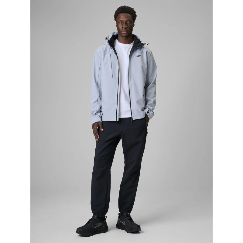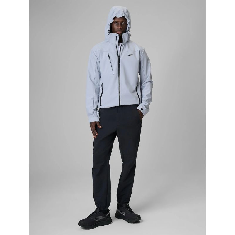 Die reguläre Passform und die hüftlange Silhouette sorgen für hohen Tragekomfort. Abnehmbare, verstellbare Kapuze , Stehkragen , verstellbare Ärmelbündchen mit Klettverschluss und ein Kordelzug am Saum mit Stoppern ermöglichen eine optimale Anpassung an Wetter und individuelle Bedürfnisse. Vorgeformte Ellbogen unterstützen die Bewegungsfreiheit, während praktische Reißverschlusstaschen das Verstauen kleiner Gegenstände erleichtern. Die Everyday-Kollektion von 4F bietet eine funktionelle Option für alle, die eine bequeme Softshelljacke für den Alltag suchen.