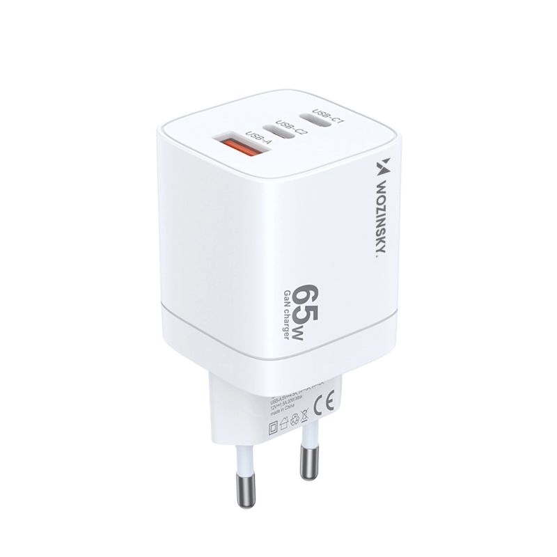 Wozinsky CGWCW 65W GaN Wandladegerät USB-A / 2 x USB-C - Weiß