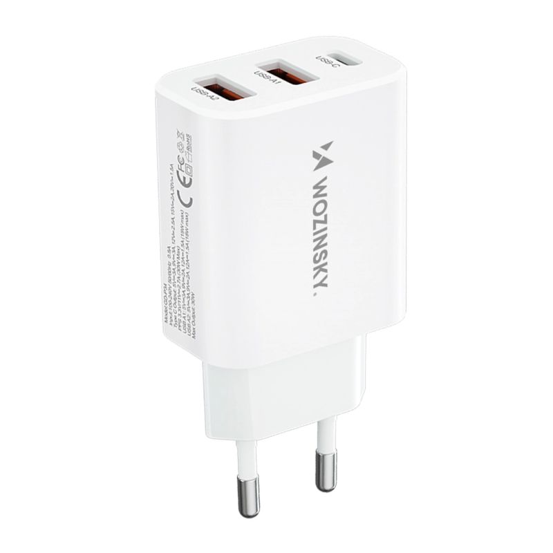 Wozinsky CWCUCW 30W USB-C / 2 x USB-A Wandladegerät - Weiß