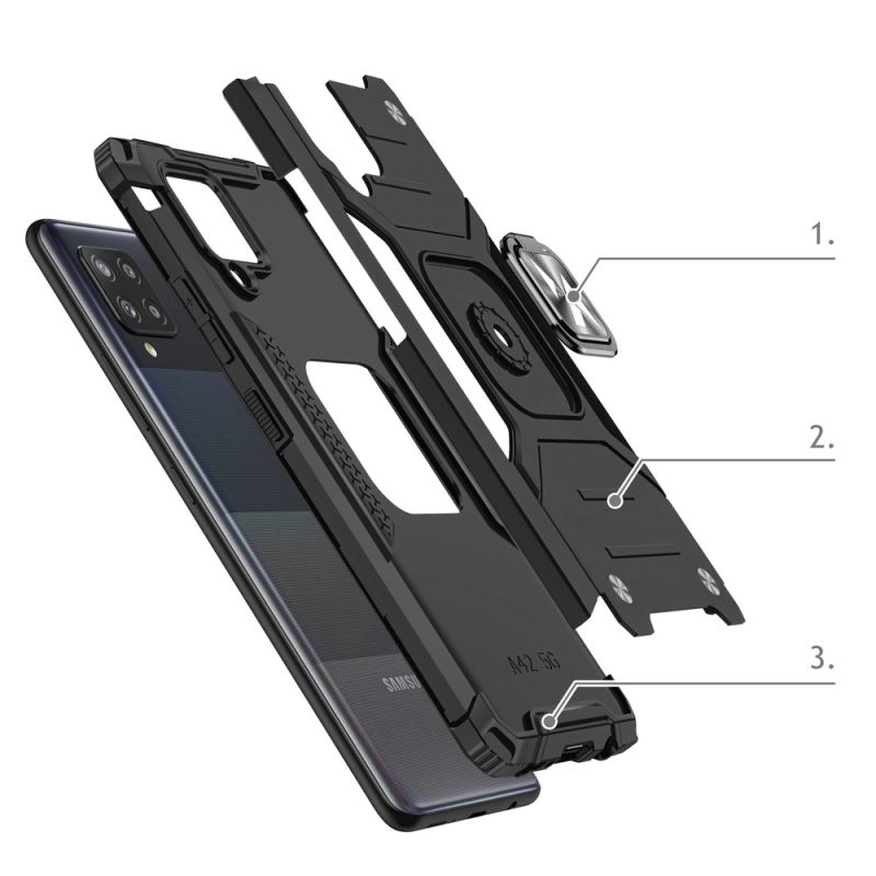 Wozinsky Ring Armor Tough Hybrid Case Cover + Magnethalterung für Samsung Galaxy A42 5G silber