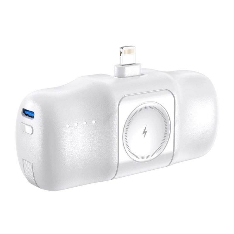 Wozinsky WF16-YLS 5000 mAh 15 W Lightning Mini-Powerbank mit integriertem USB-C-Kabel und Apple Watch Ladegerät – Weiß