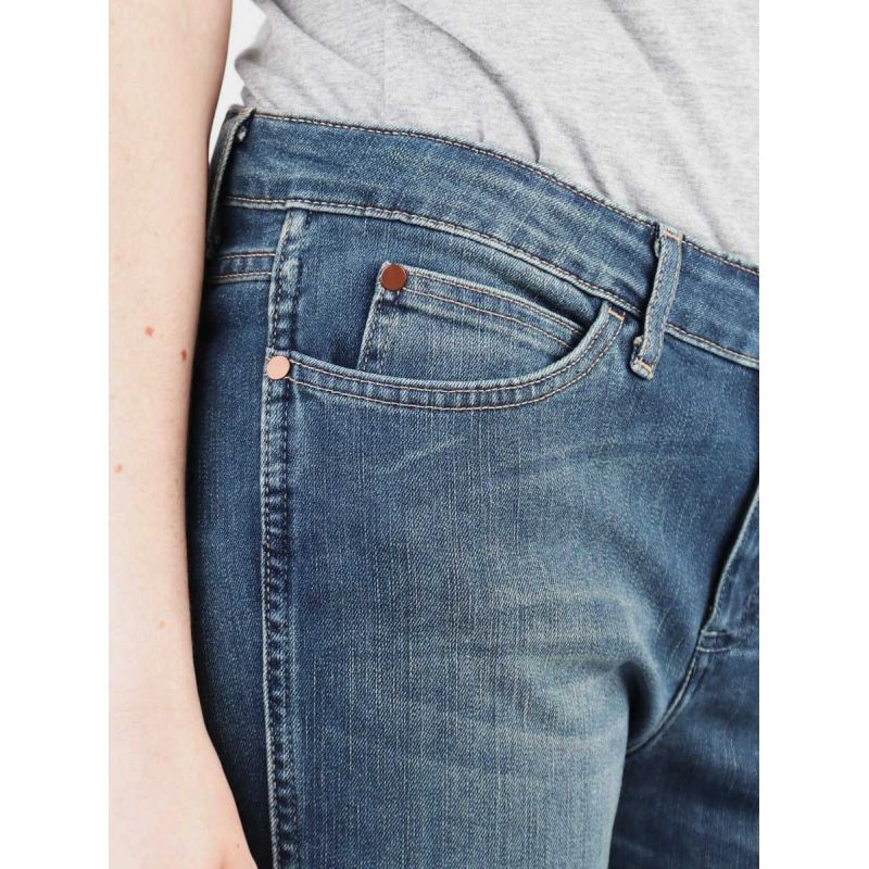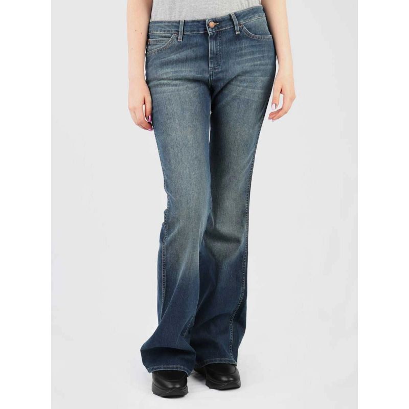 Damenjeans mit niedriger Leibhöhe und weitem Bein. Reißverschluss. Lederpatch mit dem Logo des Herstellers auf der Gesäßtasche.