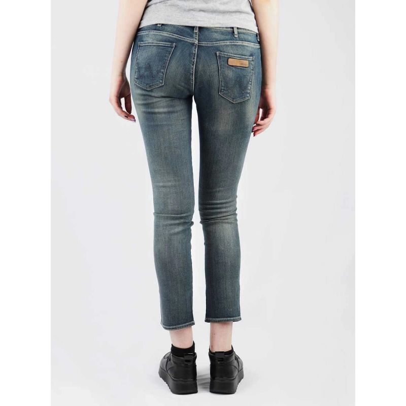 Wrangler Damenjeans mit normaler Taille und schmal zulaufendem Bein. Sie wird mit einem Reißverschluss und einem Logoknopf aus Metall geschlossen. Sie besteht aus 98 % Baumwolle und 2 % Elasthan und bietet ein leicht elastisches Tragegefühl mit zusätzlichem Stretchanteil. Auf der Gesäßtasche befindet sich ein Lederpatch mit geprägtem Markenlogo.